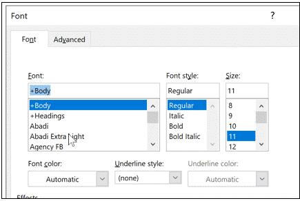 - 当对话框打开时,您可以选择要使用的字体。您还可以更改文本的样式、大小和颜色。