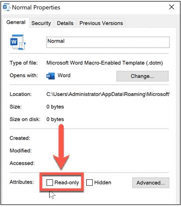 如果您已按照上述步骤操作,但仍然不起作用,问题可能是您没有编辑Normal.dotm模板文件的权限。这是 Microsoft Word 用于创建具有默认格式设置的新文档的模板。