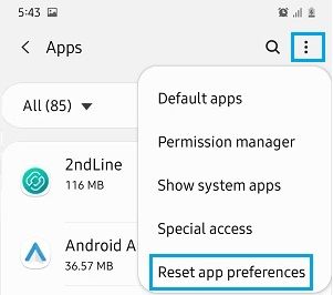 1.转到设置>应用程序 > 点击三点菜单图标并在下拉菜单中选择重置应用程序首选项选项。