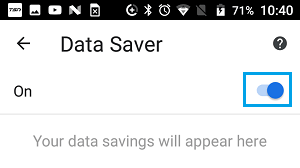 4.在下一个屏幕上,通过将开关移动到ON位置,在 Chrome 浏览器中启用Data Saver 。