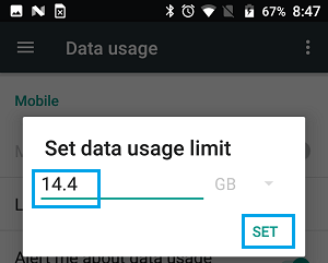 5.在弹出窗口中,输入 您希望 Android 手机警告您的数据限制。最好,此数字应小于最大允许数据限制。