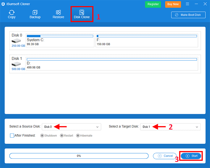 如果您已尝试上述所有方法,但“三星数据迁移克隆失败”问题仍然存在,为什么不使用其他硬盘克隆工具呢?iSumsoft Cloner是最强大且免费的硬盘克隆工具之一,可让您毫无问题地将 Windows 操作系统和其他数据从一个硬盘 (SSD) 克隆到另一个硬盘。