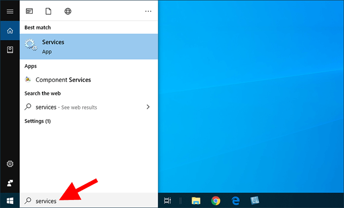 在 Cortana 搜索框中键入services并按 Enter 键,打开服务应用程序。