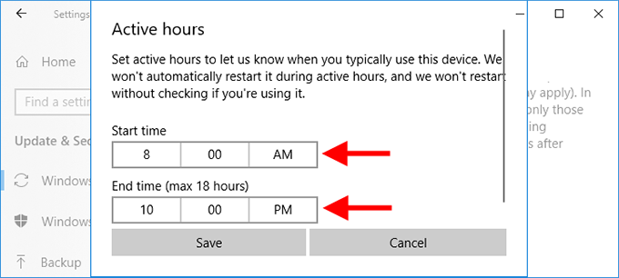 步骤 3:根据您的游戏时间或您通常使用计算机的时间设置活动时间,以便 Windows 10 不会在您的活动时间自动重新启动。例如,如果您通常在白天玩游戏,则可以将活跃时间设置为上午 8:00 到晚上 10:00。这样,您就可以在 Windows 10 上获得更好的游戏体验,而不会受到计算机突然自动重启的影响。
