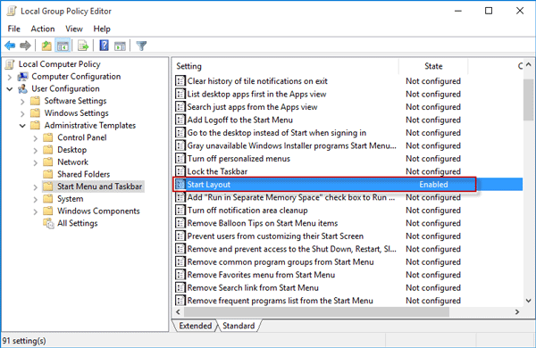 步骤 4:接下来,在右侧窗格中查找名为“开始布局”的策略设置,然后双击它。