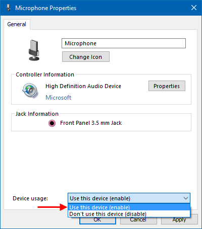 步骤4:然后单击“属性” ,然后在“设备使用情况” 下拉列表 下选择“使用此设备(启用)”选项 ,单击“应用” ,然后 单击“确定”。