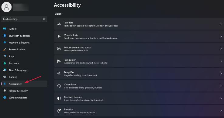 - 转到 辅助功能部分。