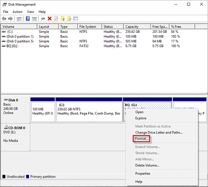 如果通过命令提示符转换为 NTFS 对您无效,则必须格式化硬盘。或者,您可以通过文件资源管理器或磁盘管理使用 NTFS 文件系统格式化 FAT/FAT 32 。