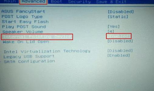 从BIOS 设置实用程序中,您还可以启用触摸板。