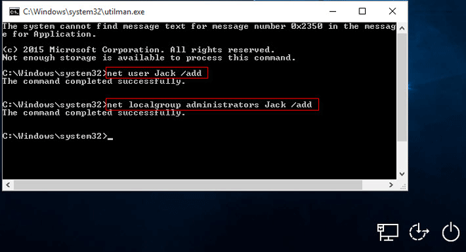 现在,您可以通过运行以下两个命令行为 Windows 10 创建新的管理员帐户。将user_name替换为您想要的用户名。