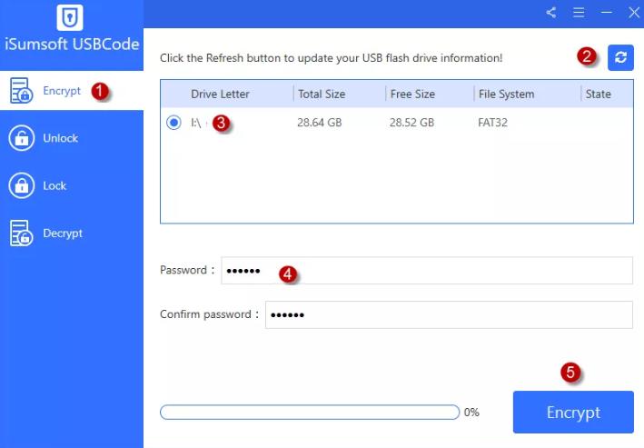 步骤1:打开iSumsoft USBCode并单击加密选项。
