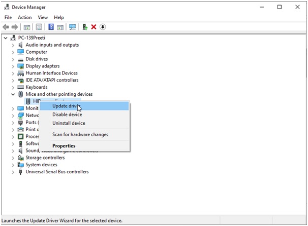 4.右键单击 Logitech 鼠标或无线鼠标> 更新驱动程序。