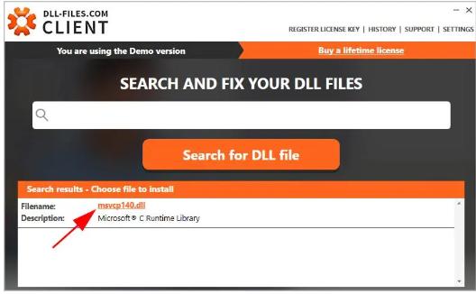 如果您无法在计算机中找到 MSVCP140.dll 文件,请恢复计算机中丢失的文件,这将有助于解决问题。您可以使用 DLL-files.com 客户端来执行此操作。