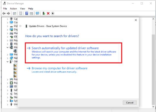 - 选择“自动搜索更新的驱动程序软件”选项。