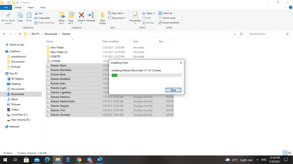 当您打开文件所在的文件夹时,右键单击您的字体,解压压缩文件,然后将其解压到确切位置,例如“桌面”。