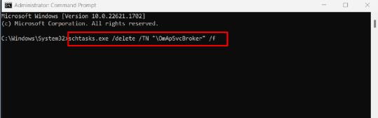 schtasks.exe /delete /TN "\OmApSvcBroker" /f并按Enter。
