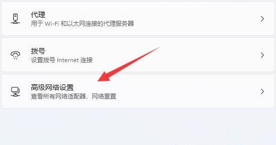2、网络和 Internet 设置窗口,找到并点击【高级网络设置(查看所有网络适配器,网络重置)】。