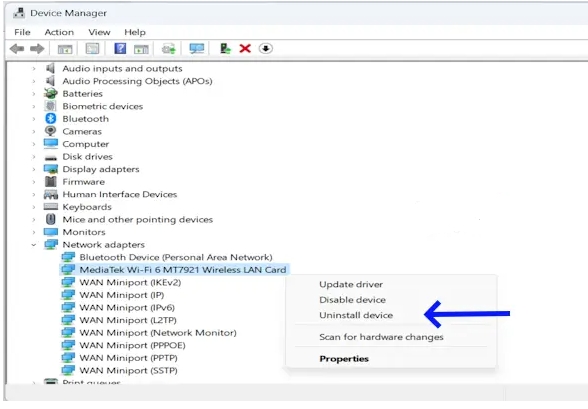 - 找到驱动程序后,从驱动程序列表中查找,右键单击该驱动程序,然后选择卸载设备。