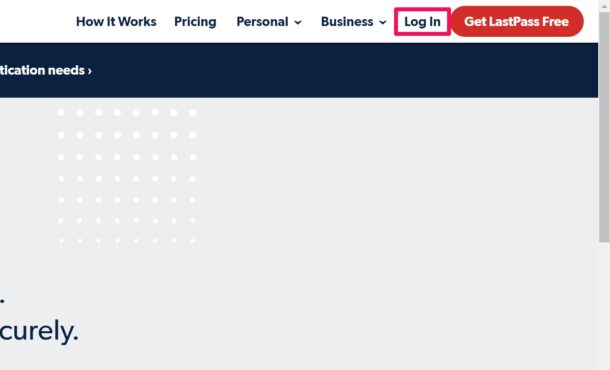 - 打开任何桌面级 Web 浏览器并访问lastpass.com。在页面的右上角,您会找到“登录”选项。点击它。