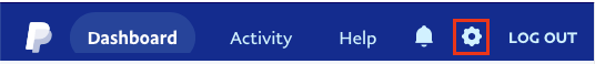 登录到您的 PayPal 帐户,然后单击位于屏幕右上角的齿轮形设置图标。
