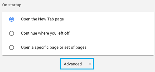 在“设置”屏幕上,向下滚动到底部并单击“高级” 。