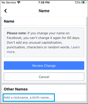 此外,如果您经常更改姓名,Facebook 可能会在 120 天内阻止您进一步更改您的姓名。