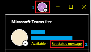 打开Microsoft Teams > 单击您的个人资料图片并选择“设置状态消息”选项。