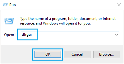 2.在“运行命令”窗口中,键入dfrgui并单击“确定” 。