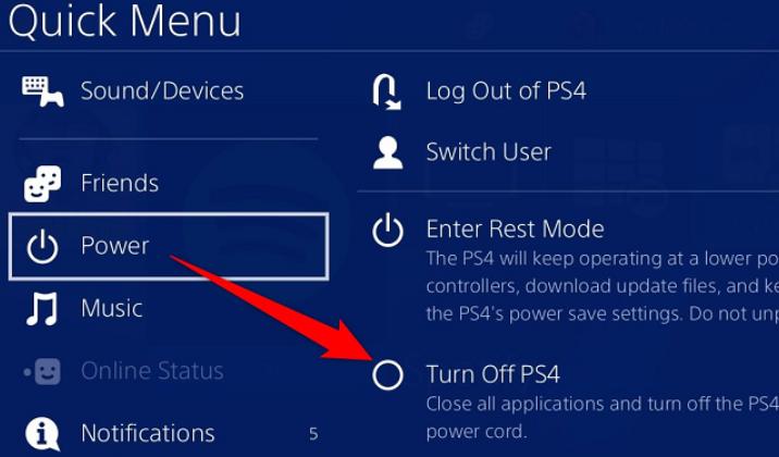 如果您的PS4 控制器不工作,或者您无权访问它,请使用控制台本身上的按钮将其关闭。