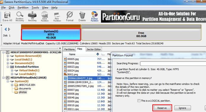 3)点击“Reserve”恢复如下图提示的丢失分区。![硬盘未在Windows10中显示 [10个修复方法]](https://www.duotin.com/wp-content/themes/justnews/themer/assets/images/lazy.png)