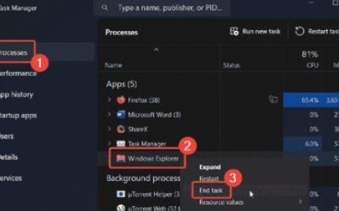 如果您在 Windows 11 上的桌面屏幕在任务栏上方显示一个浮动的透明框,那么您应该做的第一件事就是重新启动 Windows 资源管理器。一些用户通过这样做设法解决了这个问题,我们建议试一试。