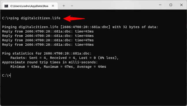 提示:有关什么是ping以及如何使用它的更多详细信息,请阅读这篇文章:什么是 ping 命令?什么是应用程序和游戏中的 ping?如何在 Windows 中使用 ping?.