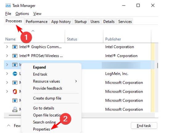 - 接下来,选择Processes选项卡,右键单击itibiti.exe进程,然后选择Properties。