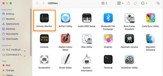 - 找到活动监视器并双击打开。