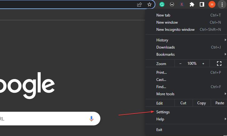 - 启动浏览器。单击 浏览器右上角的三点图标,然后选择设置。