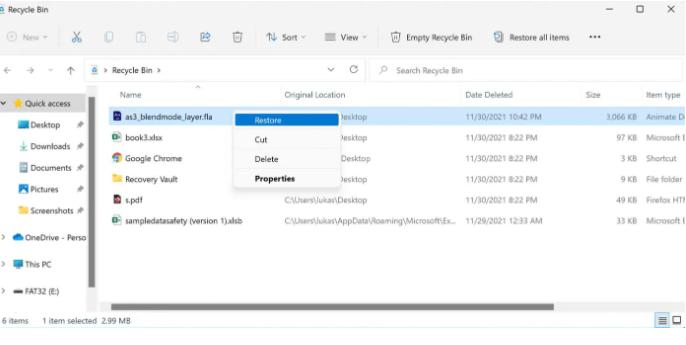 以下步骤将帮助您恢复您的。回收站中的 FLA 文件: