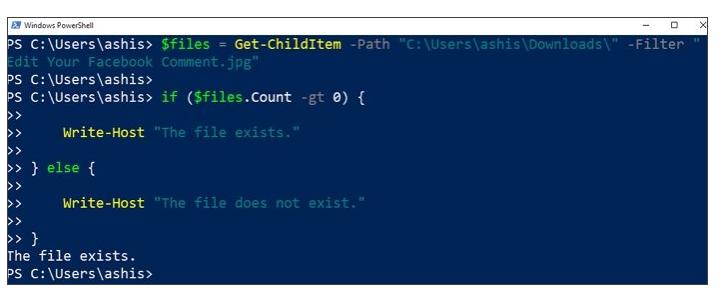 Get-ChildItem是另一个用于文件存在性检查的有用 cmdlet。它在指定路径检索子项(文件和目录)。您可以通过根据所需文件名过滤结果来确定文件是否存在。