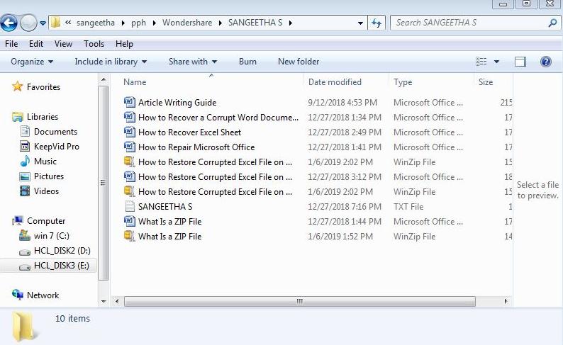 在上面的屏幕截图中,您可以找到名为“How to restore corrupted excel file”的压缩文件。