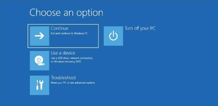 - 返回Windows 恢复菜单并单击继续。等待电脑重新启动。