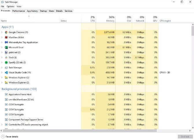 作为下一个故障排除步骤,请尝试按Alt + Tab切换到另一个程序。如果仍然卡住并且看不到菜单切换器出现,请尝试按Ctrl + Shift + Esc打开任务管理器并终止所有无响应的程序。您还应该知道如何在不使用任务管理器的情况下强制关闭应用程序。