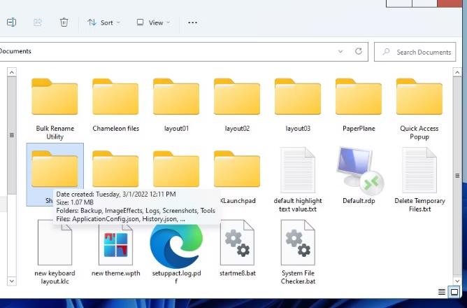 在文件资源管理器中检查文件夹大小信息的另一种方法是查看其工具提示。将光标悬停在文件夹上几秒钟,直到出现工具提示,如下面的快照所示。该工具提示包括文件夹的大小数字以及子文件夹详细信息。