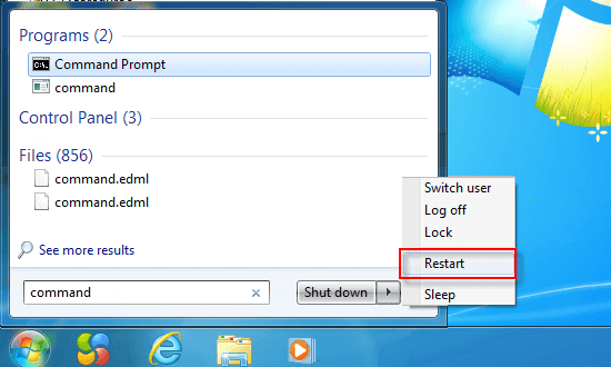 步骤 1:单击“开始”按钮,在框中键入命令,然后重新启动计算机。