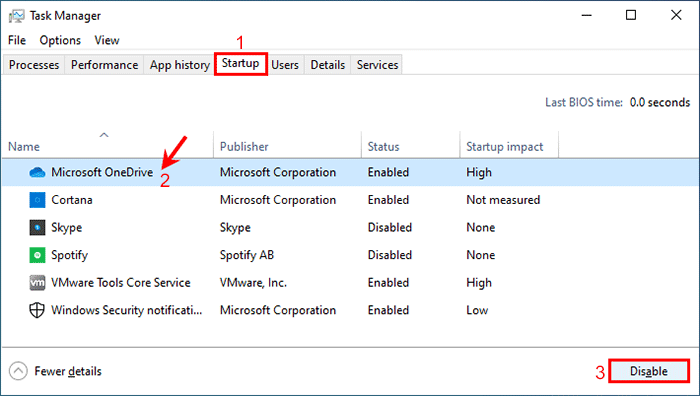 方法 2:使用任务管理器在启动时禁用 OneDrive