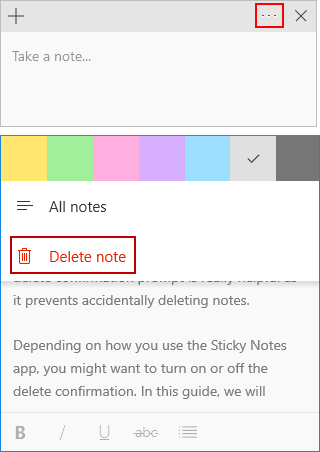删除便笺时,Windows 将删除便笺中的所有上下文。