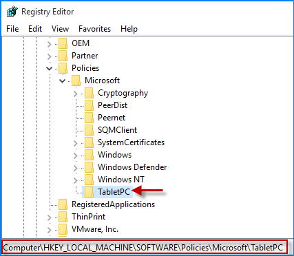 步骤 2:在注册表编辑器中,导航至注册表项:HKEY_LOCAL_MACHINESOFTWAREPoliciesMicrosoftTabletPC。