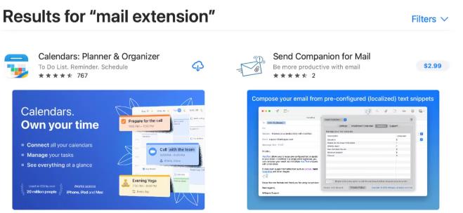 在撰写本文时,浏览邮件扩展最直接的方法是在 App Store 中搜索“邮件扩展”。这仍会显示 Safari 扩展程序和其他应用程序,但您将有更好的机会发现邮件扩展程序。许多邮件扩展程序通过应用内购买是免费的,但有些扩展程序需要直接购买。
