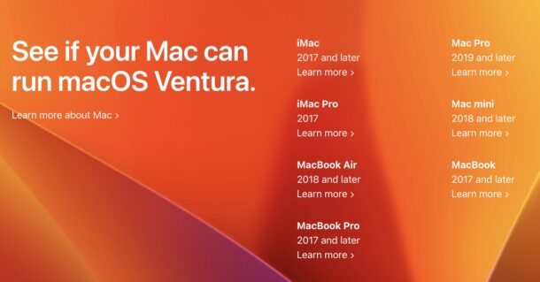 如您所见,2017 年之前发布的任何 Mac 都不包括在内,因此它们将被卡在 Monterey、Big Sur 或更早的系统软件版本上。