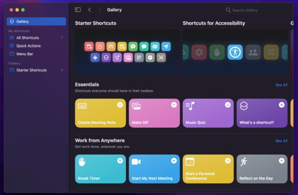您可以从头开始创建自定义快捷方式,也可以在图库中查找预配置的快捷方式以在 Mac 上使用。您甚至可以在 Mac 上运行 iPhone 和 iPad 快捷方式。