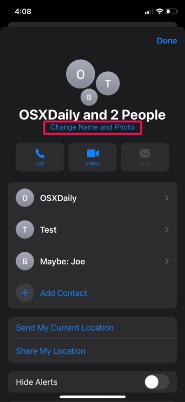 - 现在,点击群组名称下方的“更改名称和照片”选项即可开始使用。