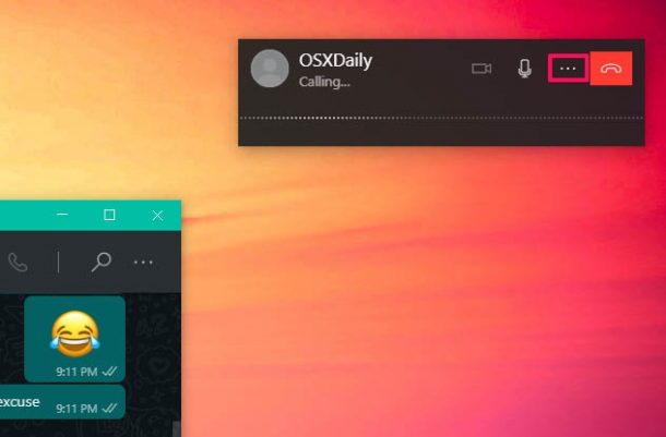 - 这将在屏幕右上角显示一个微小的呼叫界面。在这里,您将看到通话进度以及将麦克风静音、结束通话甚至在语音和视频之间切换的选项。要访问更多选项,您可以单击三点图标。
